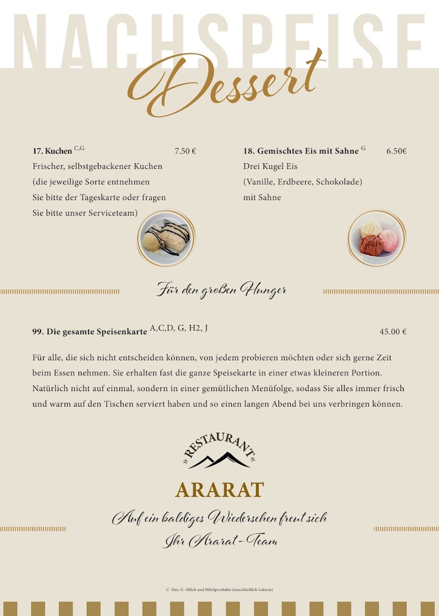 Restaurant Ararat Menu